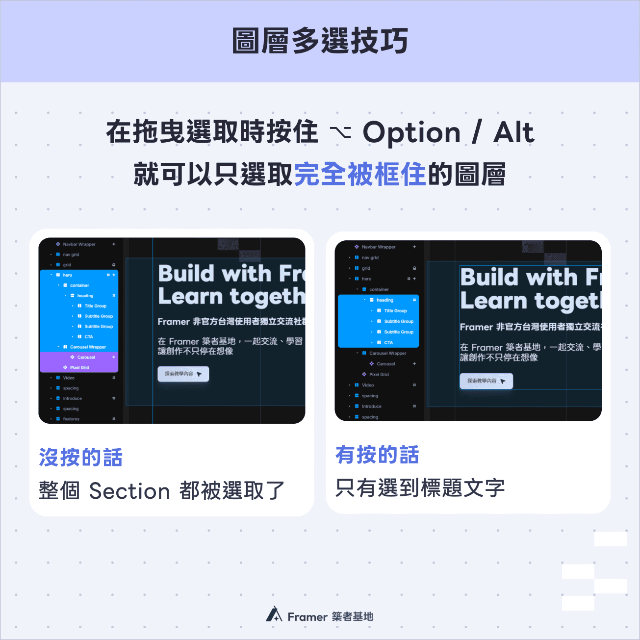 Framer 的圖層選取邏輯和 Figma 相反