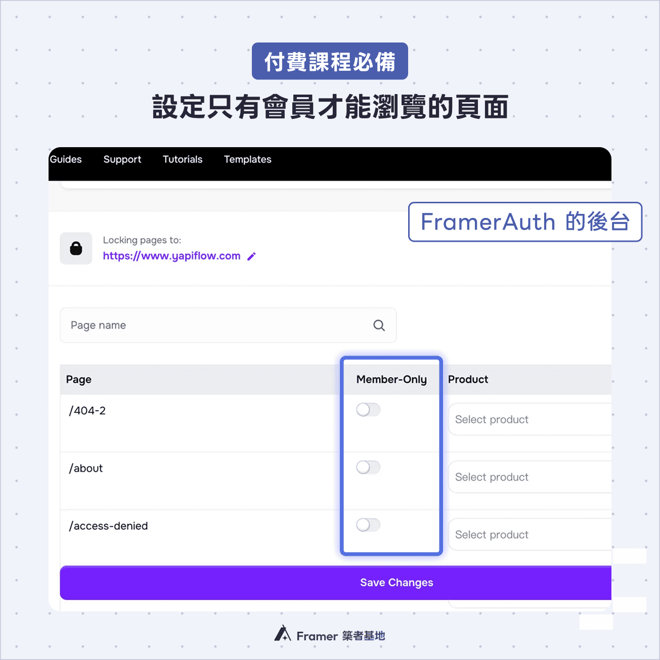 除了控制單一元件外,FramerAuth 也可以直接限制「整個頁面」的存取權限。