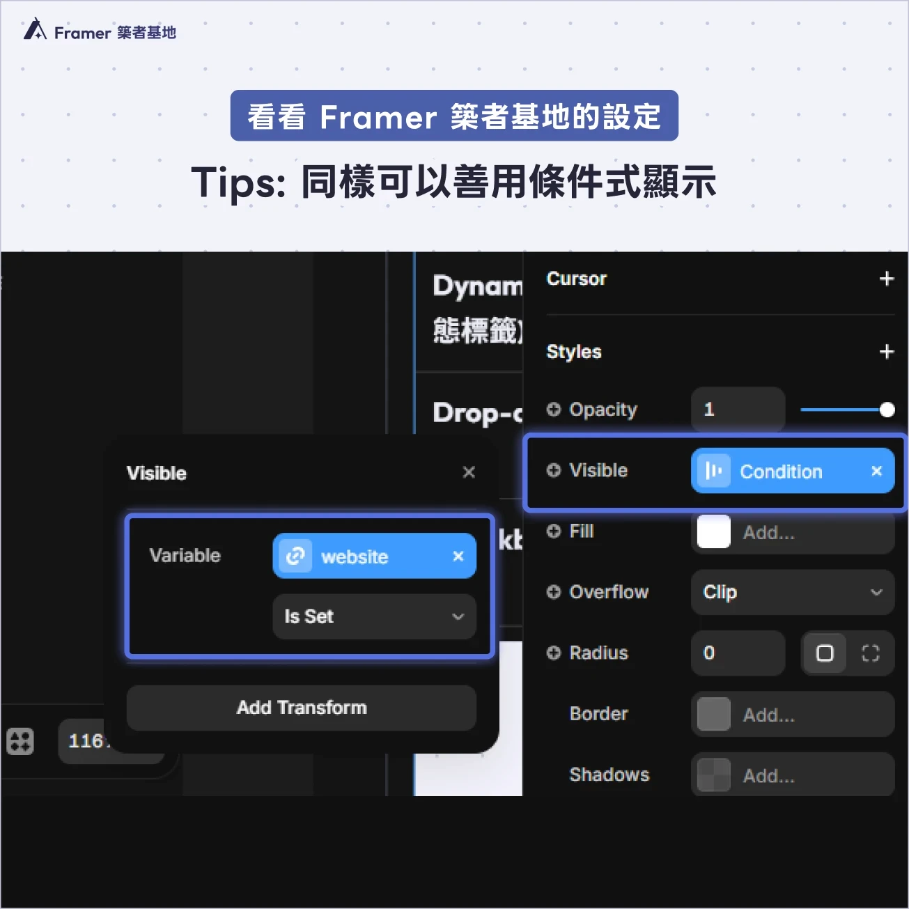 Tips: 同樣可以善用 Conditional Visibility (條件式顯示)!