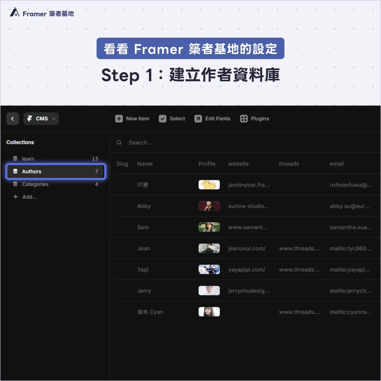 實際來看看 Framer 築者基地的資料庫是怎麼建吧!