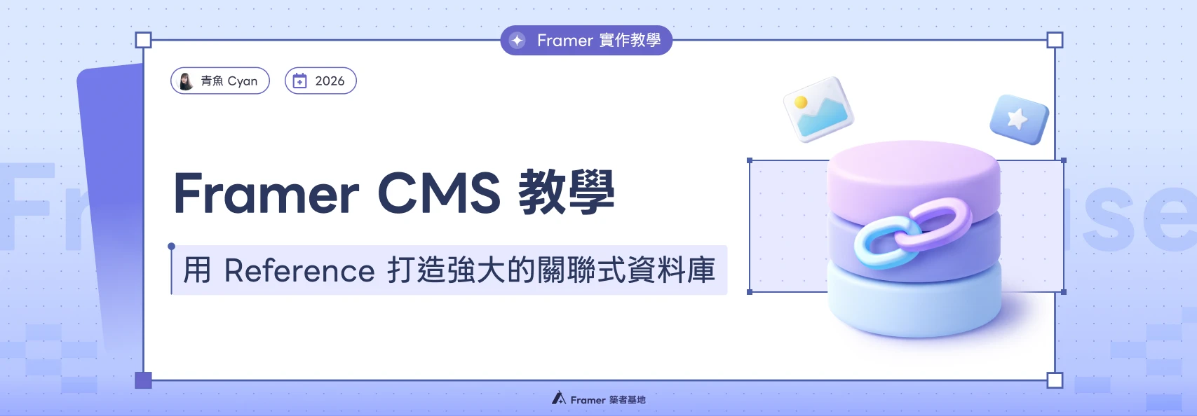 當專案規模變大,像是要做一個有很多作者的部落格,如果突然要更換某位作家的頭像時該怎麼辦?要點進去 20 幾篇不同的 CMS 文章裡,一篇篇更新圖片嗎?其實有只改一次就好的方法!在 Framer 裡,如果你有設定好 CMS References,就能讓資料庫可以互相串連,建立一個會自動同步的聰明資料庫。一起來看看怎麼做吧~(本教學內容擷取轉寫自 Framer 官方教學:Framer Update: CMS Collection References)