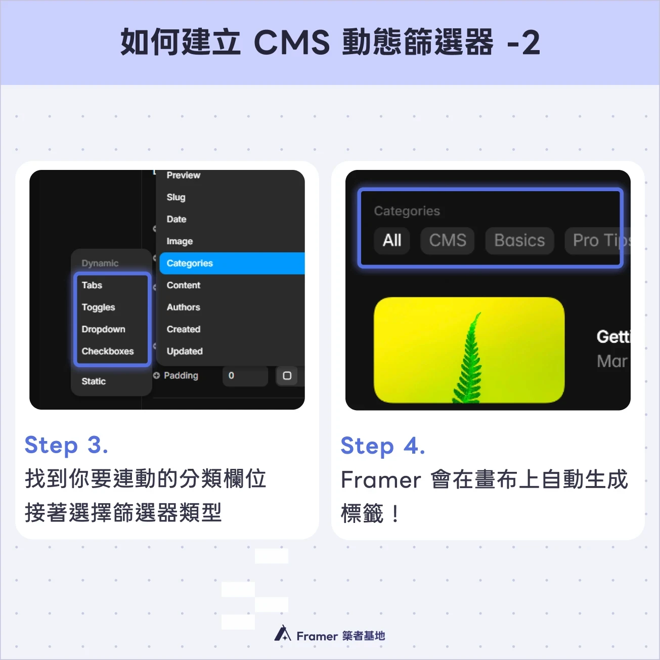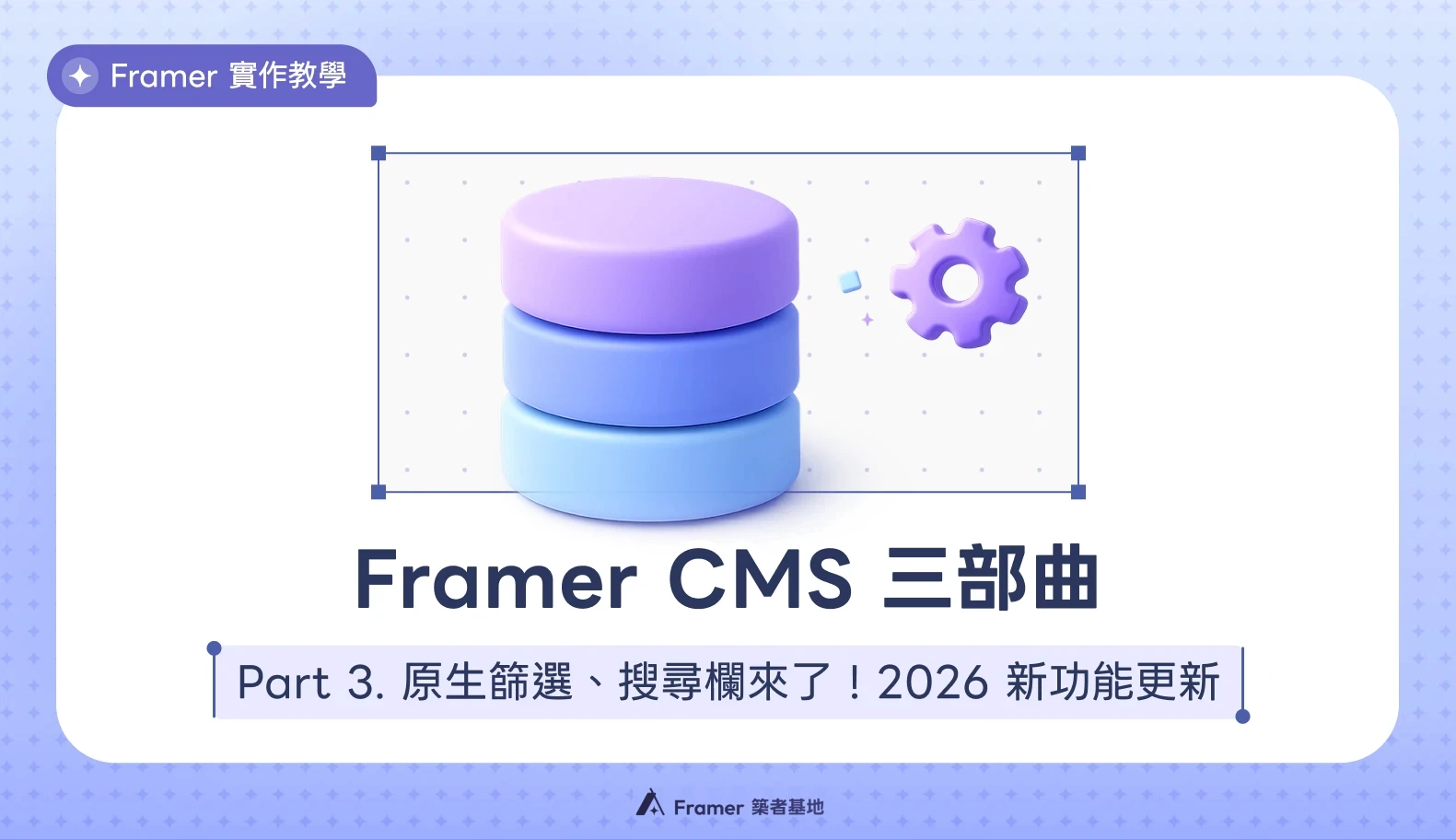 過去在 Framer 中,要做出流暢的網頁篩選功能非常複雜,甚至需要寫程式碼或者是額外購買 Plugin。不過 Framer 終於在 2026 年 2 月 推出的 Dynamic Filters (動態篩選器) ,解決了長期以來的痛點。