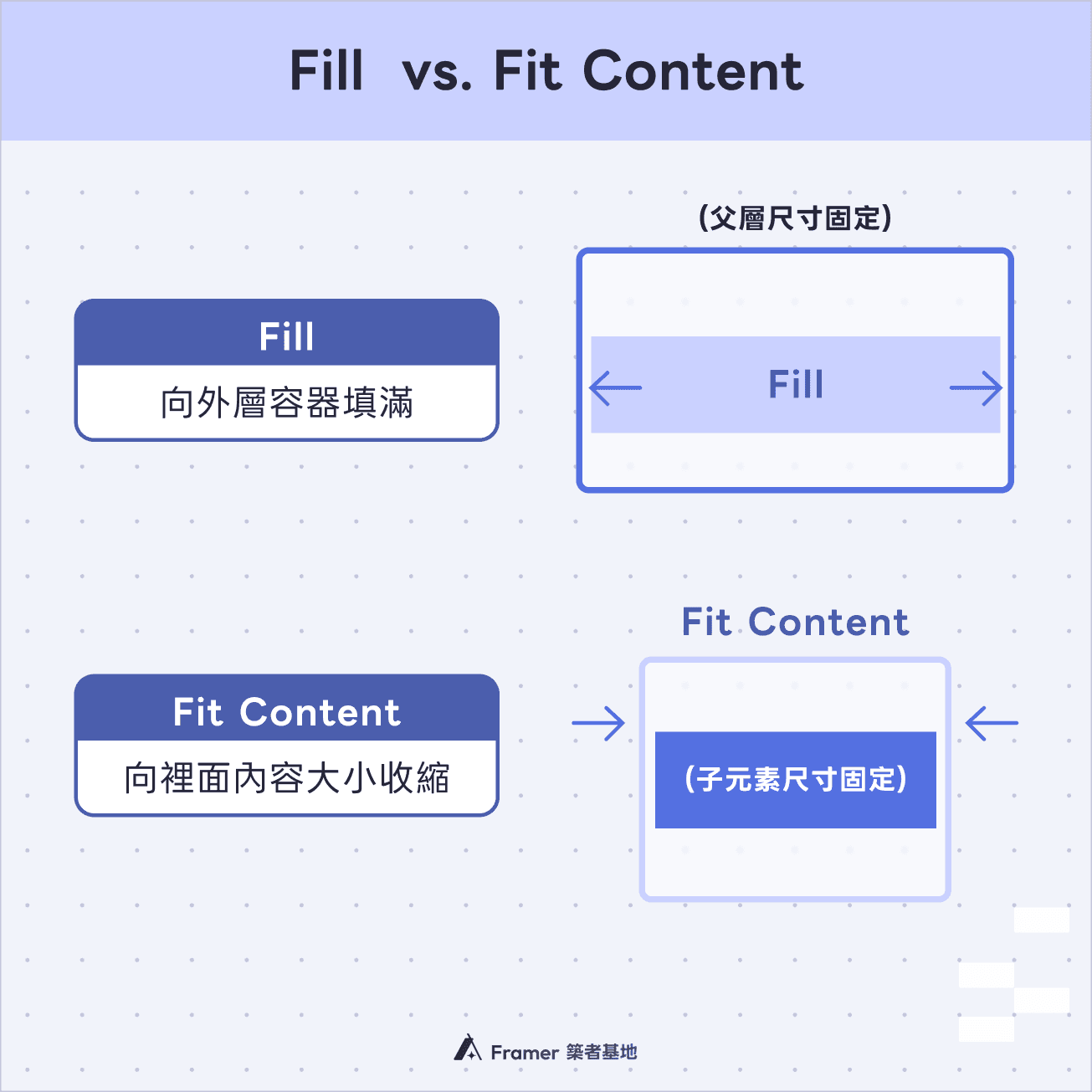 可以想像是一推一拉:Fill 是向外撐開,Fit Content 是向內收縮。